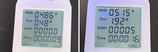 另外,我们是对的 USB 测试了接口的电压和电流。其中,前排 USB Type-A 接口的电压和电流分别是 4.86V 和 0.48A,USB Type-C 接口的电压和电流分别是 5.15V 和 1.92A;后排 USB Type-C 接口的电压和电流分别是 5.13V 和 1.92A。