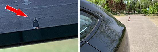 在后视线检测中,桩桶仍然固定放置,然后移动车辆,直到桩桶的上缘可以观察到。因为配备了流媒体后视镜,经过实际测量,后视线测得的距离是 在测试过的同级别车型中,8.155m处于上游水平。