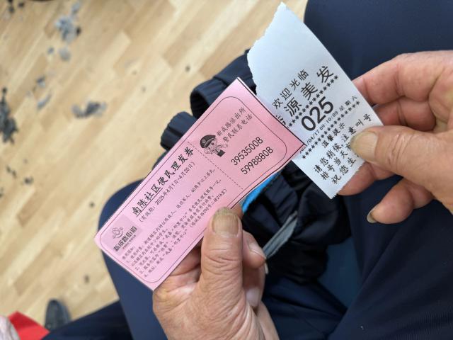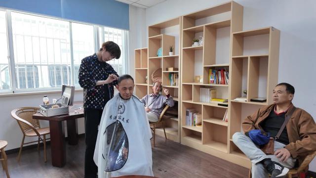 在服务当天,许多居民来到服务点,志愿者们正在为周围居民免费理发。短短 10 不到一分钟,居民陈品弟的发型已经修剪完毕。"剪头发很好,服务也很好。"刚刚理完头发的陈大爷说。