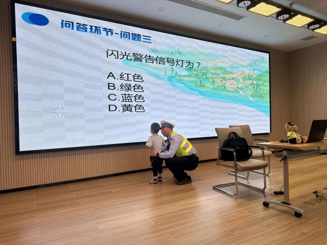 交警叔叔来自上海市公安局宝山分局交警支队七大队,成为孩子们的“金老师”和“常老师”。她们以农民画和路口发生真实事故为教材,生动有趣地讲述了交通标志、过马路的交通安全知识。“朋友们在画中寻找一些错误的做法?“随着提问,孩子们变成了“安全小侦探”,解锁了民间艺术中的交通安全常识。在最后的“考试”问答环节,孩子们的手比天还高。”这是选择。 D,闪光灯警告信号灯是黄色的。""那是禁止停车!“答案又快又准,连父母都忍不住鼓掌!