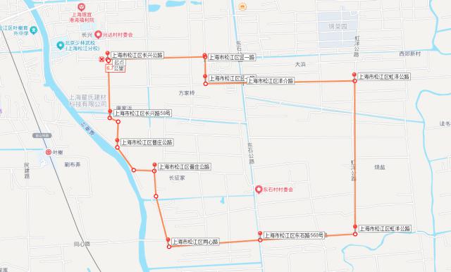 长兴道路→竖一路→洋介路→虹洋道路→东石路→同心路→普庄公路→长兴路(全长约 6.7 公里,大约骑行时间 1.5 小时)