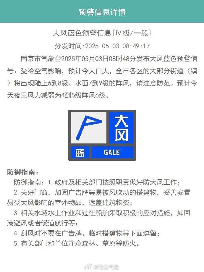 原题:“大风蓝预警!雷雨 9级阵风》