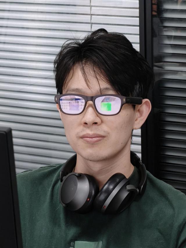 但是由于光波导方案需要使用光栅来显示图像,从外部观察 StarV Air2 当时,我们可以清楚地看到镜头上的光栅反射区域;当眼镜显示画面时,甚至可以从特定的角度观察到镜头光栅上的绿光,让人意识到这不是一副普通的眼镜。