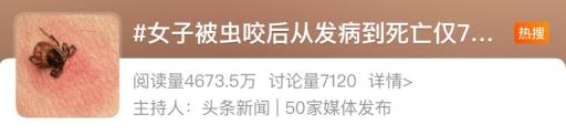 网友说,一开始家里人以为妈妈只是普通感冒发烧。经检查,母亲被诊断为“蜱病”,感染了新型布尼亚病毒,然后病情严重,不幸去世。