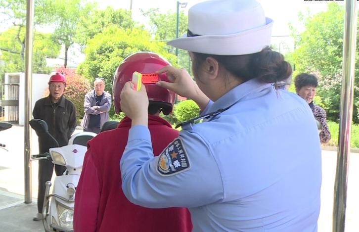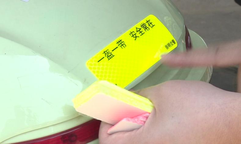 前几天,崇明交管部门的民警带着反光标志来到庙镇庙中村,免费为过去的非机动车张贴反光标志。这些标有“一盔一带,安全常在”字样的标志,被贴在车辆尾端、头盔后面等醒目位置。