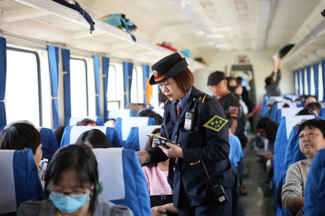 火车上没有广播,乘务员报站也成了一道独特的风景。