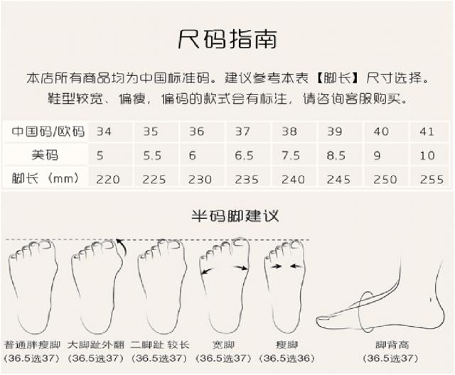 鞋码也是正常码(34-41码),根据自己平时穿的鞋码来选择代码就可以了。