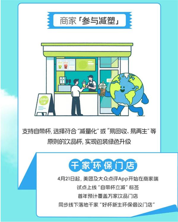 美团官方表示,为了长期减少一次性饮料杯造成的塑料污染,美团“青山计划”联合行业组织和机构,回收企业,27 世界地球日期间,家饮品品牌推出了“好杯新生”环保行动。