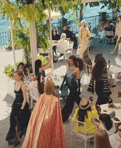 发布会开始前,著名导演 Sofia Coppola 为本次发布会拍摄预告片,生动地描绘了科莫湖梦幻舒适的假期氛围。海滨、阳光、微风...影片中呈现了所有与美好假期相关的因素。模特们乘坐快艇欣赏美丽的风景,或者懒洋洋地沐浴在阳光下,在淡淡的水果香味中享受着像电影一样多彩的假期。