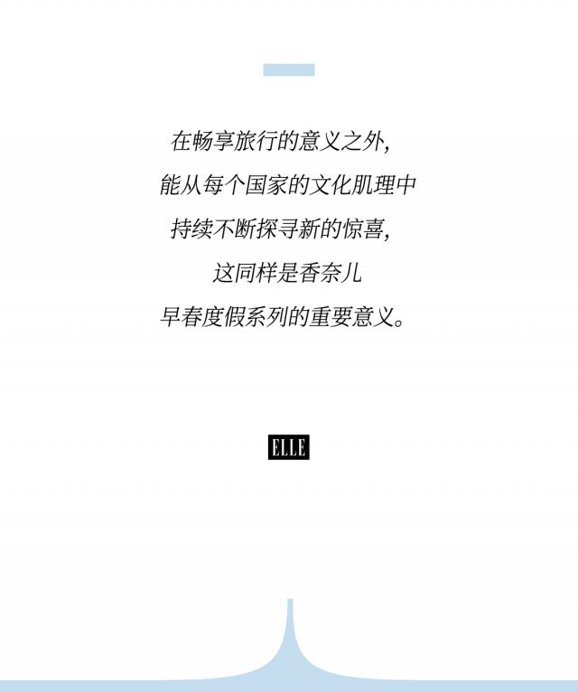 马赛、洛杉矶、蒙特卡洛、普罗旺斯莱博村作为服装行业第一个打造“早春度假系列”的品牌,留下了香奈儿丰富的灵感印记,这是世界著名的旅游胜地和世界著名的城市。