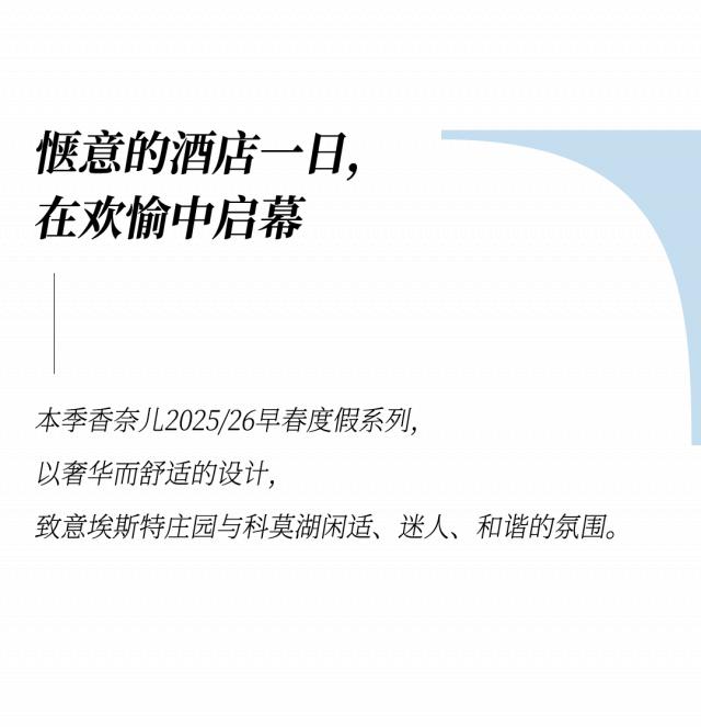 这也是庄园自文艺复兴以来闻名世界的起源。香奈儿精品部创意工作室精致诠释了这种休闲迷人的魅力,将其转化为优雅洒脱的特点。现场嘉宾坐在一张以酒店露台为灵感设计的室外桌子旁,与传统整洁的节目座椅大不相同。