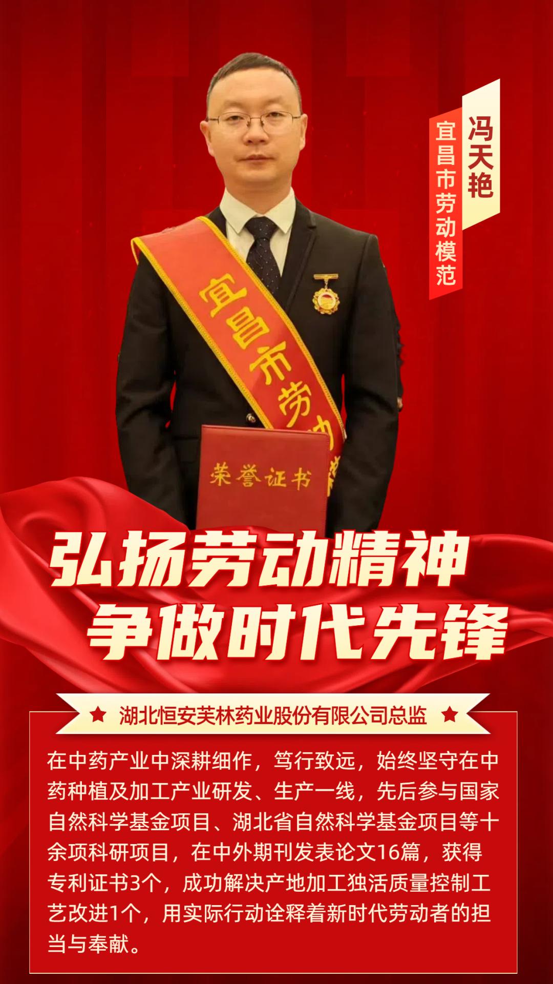 在工作中,冯天艳不仅取得了突出的成绩,而且始终践行着劳模精神,发挥着模范带头作用。2020年,他担任湖北恒安芙林药业有限公司总监、高级农艺师、药业工程师,被选为夷陵区劳模。多年来,他完成了500多个品种的中药配方颗粒工艺转型生产,建立了完整的技术体系;转向中药供应链建设后,中药种植和产地加工项目的发展成功推进,为当地带来了大量就业机会,促进了当地经济的发展。