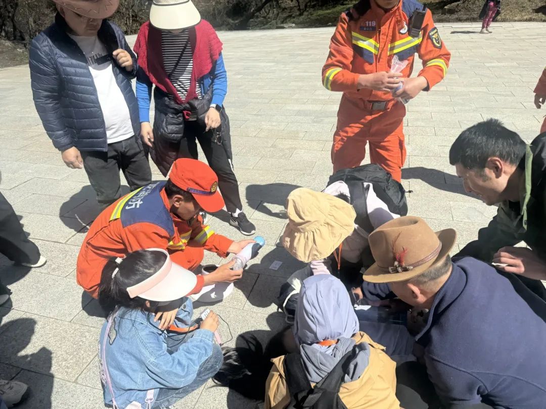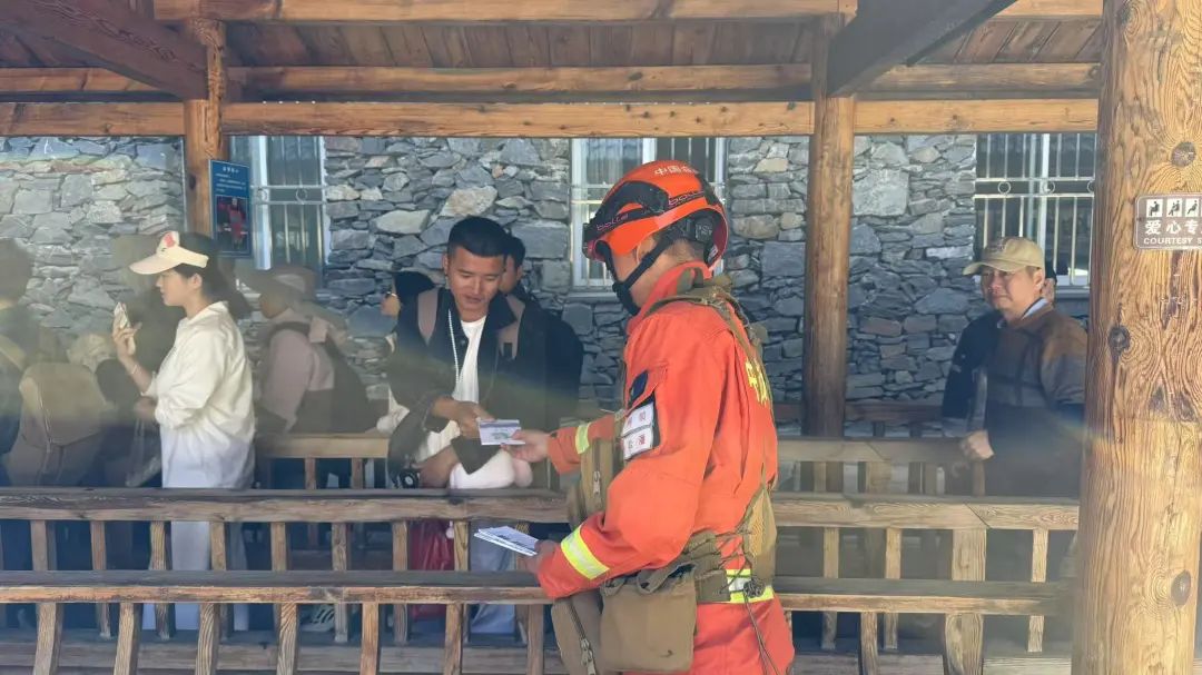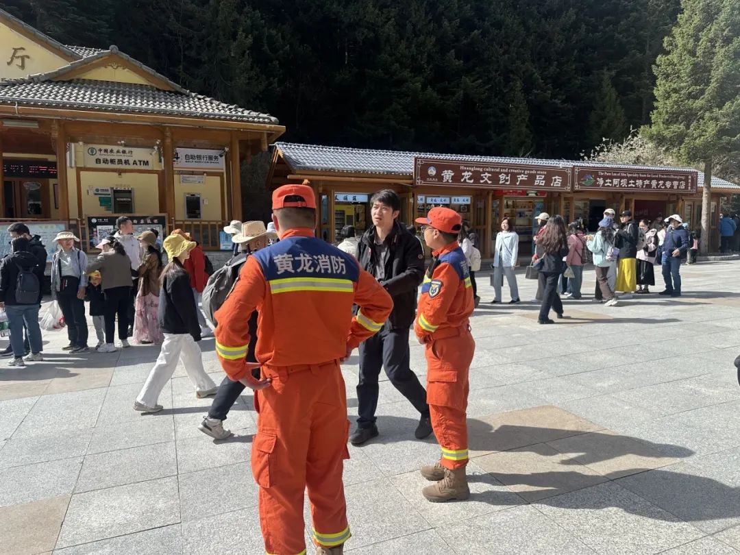 消防队员耐心提醒游客密集区域的注意事项。无论是烈日还是寒风,他们始终坚守岗位,用专业和细心为游客搭建安全屏障。