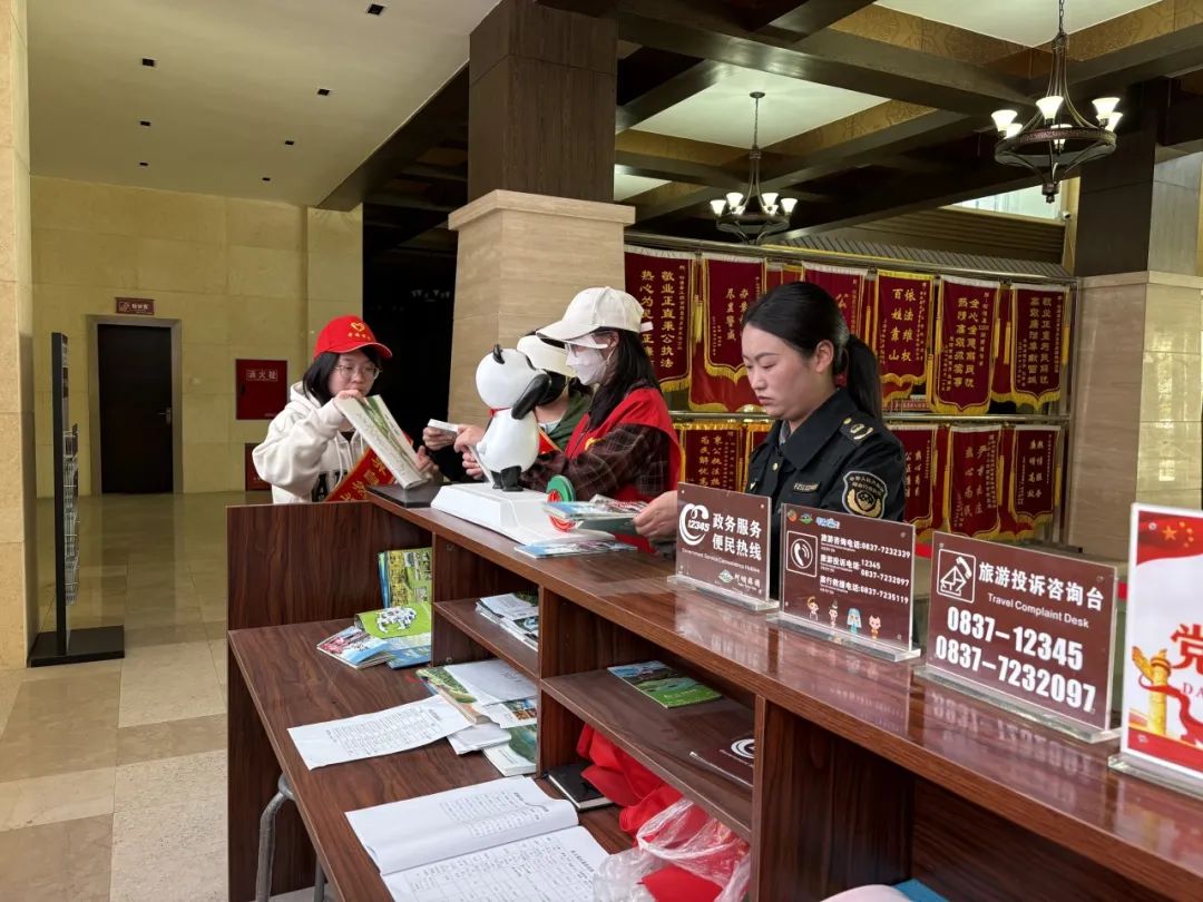 志愿者耐心地回答游客服务中心的各种问题,他们熟记景区的每一个角落,只是为了给游客最准确的指导。