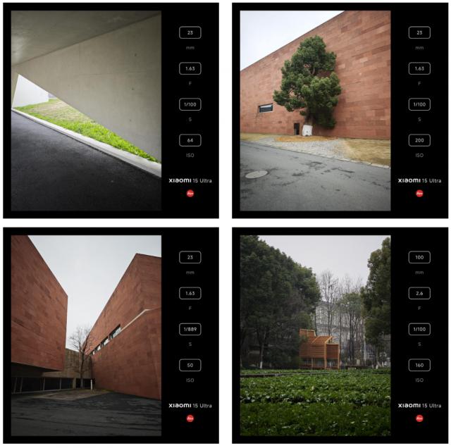 所以我们可以看到 15 Ultra 直接甩出了「一英寸超大底 2 亿像素潜望长焦」搭配,四个镜头都用了大光圈,还提高了光学结构和镀膜技术,以提高手机在弱光环境下的出片率。
