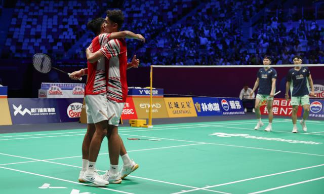 菲克里 / 毛拉纳以 21 比 18 第一个城市,徐承宰 / 金元浩以 21 比 13 扳回一城。最艰难的决胜局,双方从 18 比 18 开始一路纠缠,战至 23 比 23 平。菲克里处于最后阶段 / 毛拉纳不停地发动攻击,连续2分,最终以2分为单位。 25 比 23 比分获得决胜局。这场耗时 68 男双对决分分钟让半决赛总比分来到这里。 2 比 2 平,印尼把比赛拖到第五盘。