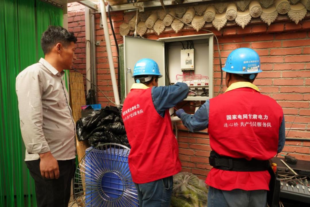 五一假期期间,国家电网永靖县供电公司三元供电所党员服务队检查了农家乐的安全用电情况。朱芳洁摄
