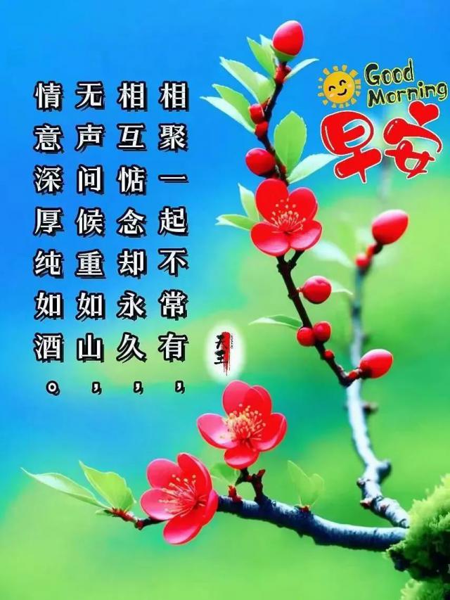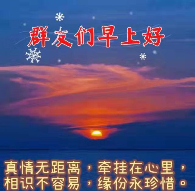 简短的问候,温暖如蜜;一条信息,深情意义重大。在彩云之港,幸福隐藏着你的心;友谊之线,岁月的终点。早上好,亲戚朋友,祝我们都幸福,岁月如初!