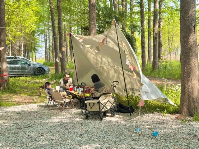 夜幕降临时,当城市的灯笼在夜幕降临时,松江区叶榭镇杉涧水榭露营地,帐篷和树林之间闪烁着一簇簇篝火。今年春天,充满“放松感”的野外露营已经成为许多社交平台搜索的“高频词”。但在杉溪水榭,露营的“粉丝”直接在野外扎起“村庄”,以帐篷为家,感受城市里的“游牧生活”。