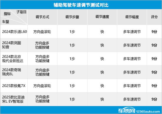 速度调节项目中,6 这辆车的整体性能符合预期。虽然调整方法不同,但在调整步骤和速度上是一致的。另外,所有车型都支持多车速调整,所以在评分上没有拉开任何差距。