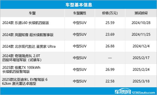 本期选取的 6 所有的车都是中型的 SUV,包括自主品牌和合资品牌,既有传统的燃油车,也有新能源车,价格区间都在。 27 不到一万元(奇瑞瑞虎) 8L 测试车是试装版)。