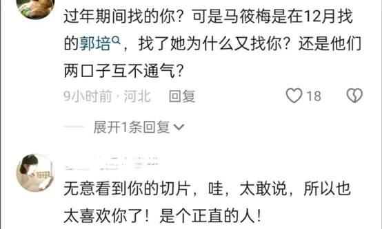 有网友留言说:马筱梅 12 月找郭培。谣言说,她和张兰也是好朋友。