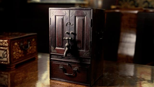 清初康乾盛世,工匠们在木作中践行“格子致知”,进一步赋予了木器浓厚的文化内涵。这种老红木铜芯水箱外木内铜的材质结构很容易隐藏,老红木属于东方甲乙木,很受欢迎;黄铜是西方庚辛金,主义理论。拆解时“封闭”的机械结构被学者引申为“知行合一”的生活原则。