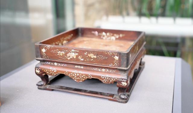 至 18 木作艺术在世纪末的乾嘉阶段达到了“器道合一”的化境。在文房书案中,当花梨木嵌螺瓜蝶纹盘出现时,它不仅仅是一个果盘。瓜蝶纹盘的外观是瓜,祈求子孙繁荣;在真正的意义上,“蝴蝶”与“礼记”、“七十”的人生哲学不谋而合,镶嵌在螺蛳上的阴阳拼接技艺,诠释了《周易》中“一阴一阳”的终极题目。果盘成为文人雅集时的哲学教具,方寸之地可论八荒,实现了从实用器物到精神道场的完形,成为文人的精神图腾。