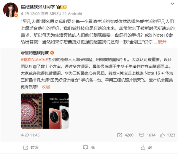 根据肖波的说法,魅族 16 该系列的灵感来源于中华千年藻井,华为的三折叠也很珍惜对方。他还说:“早期工程机的照片满天飞,量产的机会更漂亮,更有质感。”。