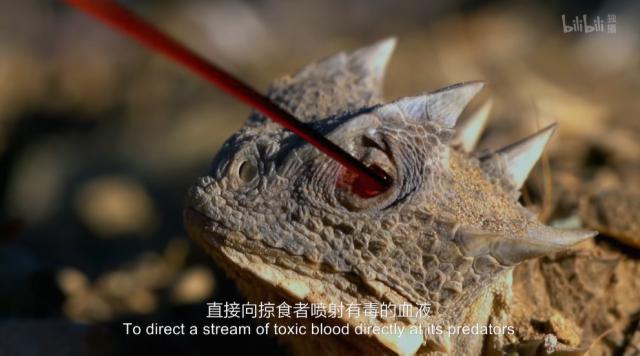 当受到大型食肉动物的攻击时,它会故意打破眼眶中的两条微血管,将有毒的血液喷射到捕食者的脸上。