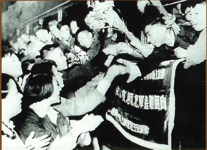 一九五五年,上海青年垦荒队乘火车前往江西。