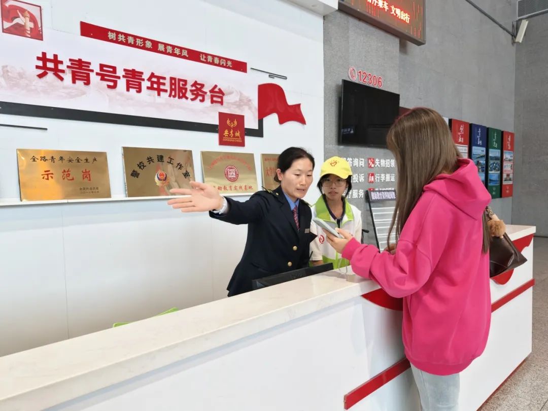 今年五一假期,共青城站客流量预计单日最高乘客数量将超过2人。为确保乘客顺利出行,车站积极组织大学生志愿者开展志愿服务活动,协助车站回答乘客咨询,支持重点乘客。