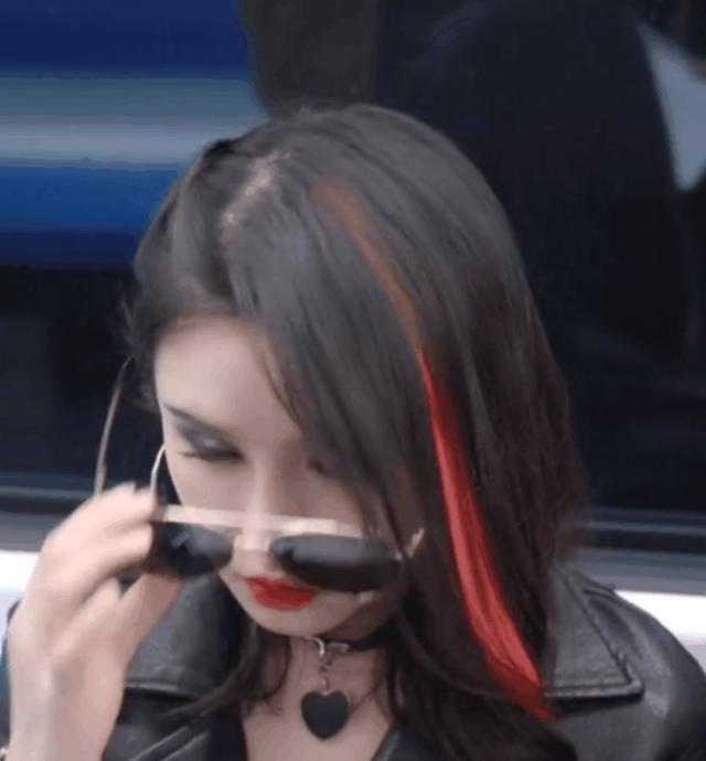 早些时候,她走的是赛博感十足的“厌世恶女”路线,挑染头发,浓浓的烟熏眼影,穿皮衣 choker,一看就惹不起。