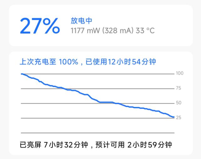 5G WiFi 混合场景,一天高韧性使用,七个半小时亮屏还剩下。 27%。
