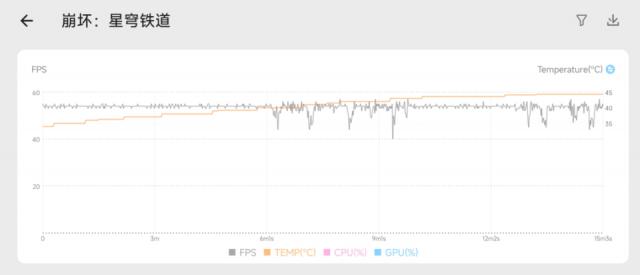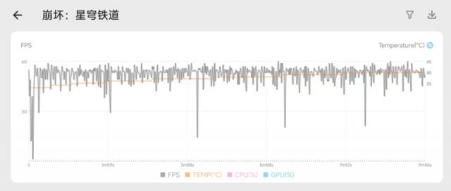 红米,在崩铁里 Turbo 4 Pro 一开始并没有向满帧跑,而是全程锁定在最高位置 54 帧。