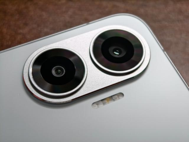 简洁的竖排双摄模组,精致的 AG 磨砂玻璃。