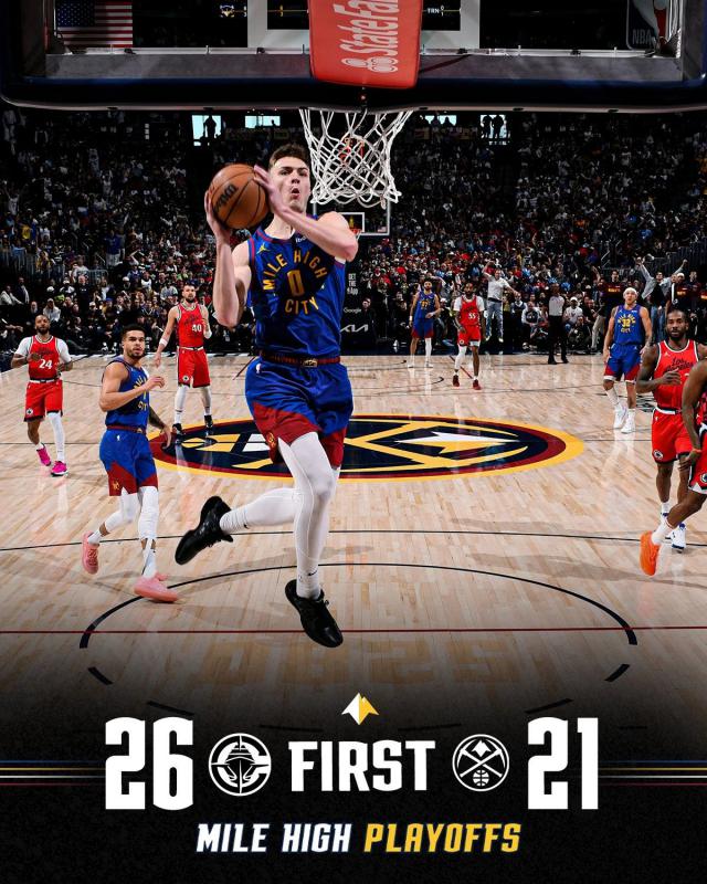 北京时间 5 月 4 日,NBA 西部第一轮季后赛 掘金主场G7 vs 快船。120 著名的快船球迷乘坐包机来到丹佛,在篮筐后面筑起了粉丝墙。快船老板鲍尔默负责包机和门票的费用。鲍尔默真的很大气。快船改变了阵容,小德里克 - 替代邓恩首发的琼斯。