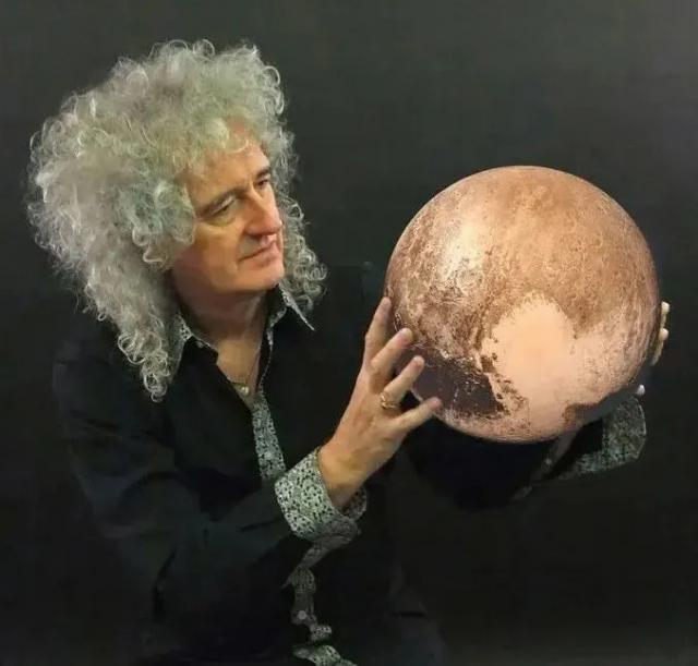 已经 78 年纪大了,他同时做了两份工作:背上吉他,他是皇后乐队的成员,对着成千上万的粉丝弹奏;放下吉他,他是科学家,也是美国航空航天局。(NASA)在小行星“贝努”上,冥王号项目组共同研究石头图像。