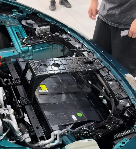 SU7 Ultra 选择碳纤维机盖后内部结构。
