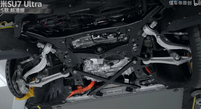 按照懂车帝对小米的看法 SU7 Ultra 我们可以看到拆解,SU7 Ultra 底盘的前半部分几乎完全关闭。