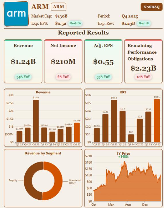 Arm的利润和收入超出预期,引导失望,盘后下跌超过11%