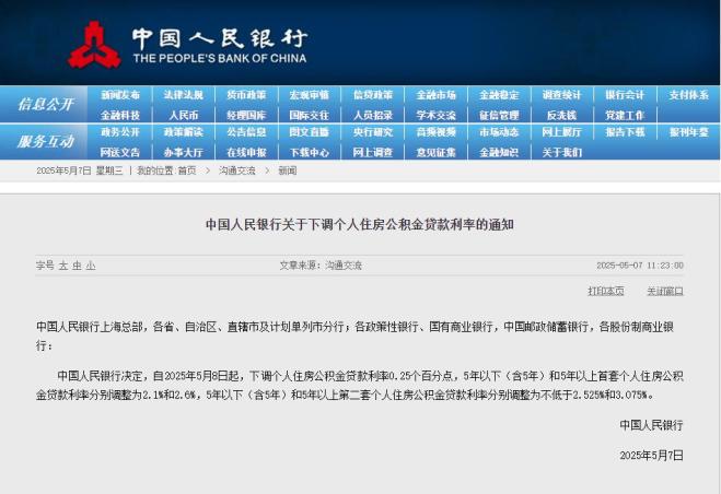 根据调整后的利率,2025年5月8日及以后申请的个人住房公积金贷款将实施。