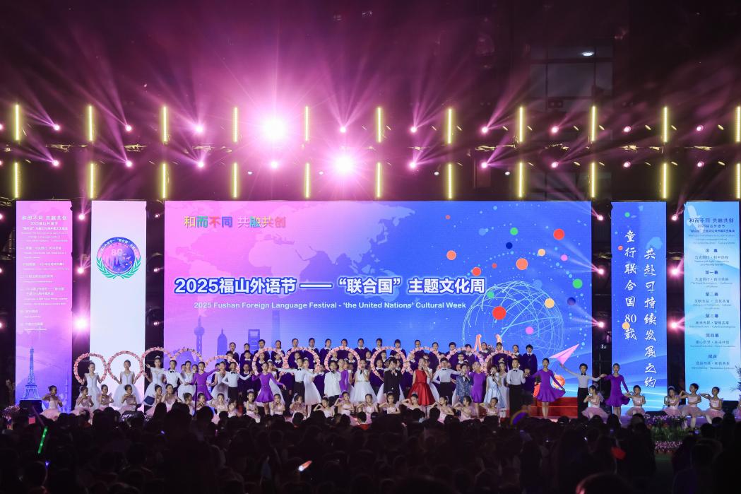 5月6日晚,2025年是联合国成立80周年,“和而不同” 在上海市浦东新区福山外国语小学开学时,互融同创——2025福山外语节“联合国”主题文化周暨学习成果展示。