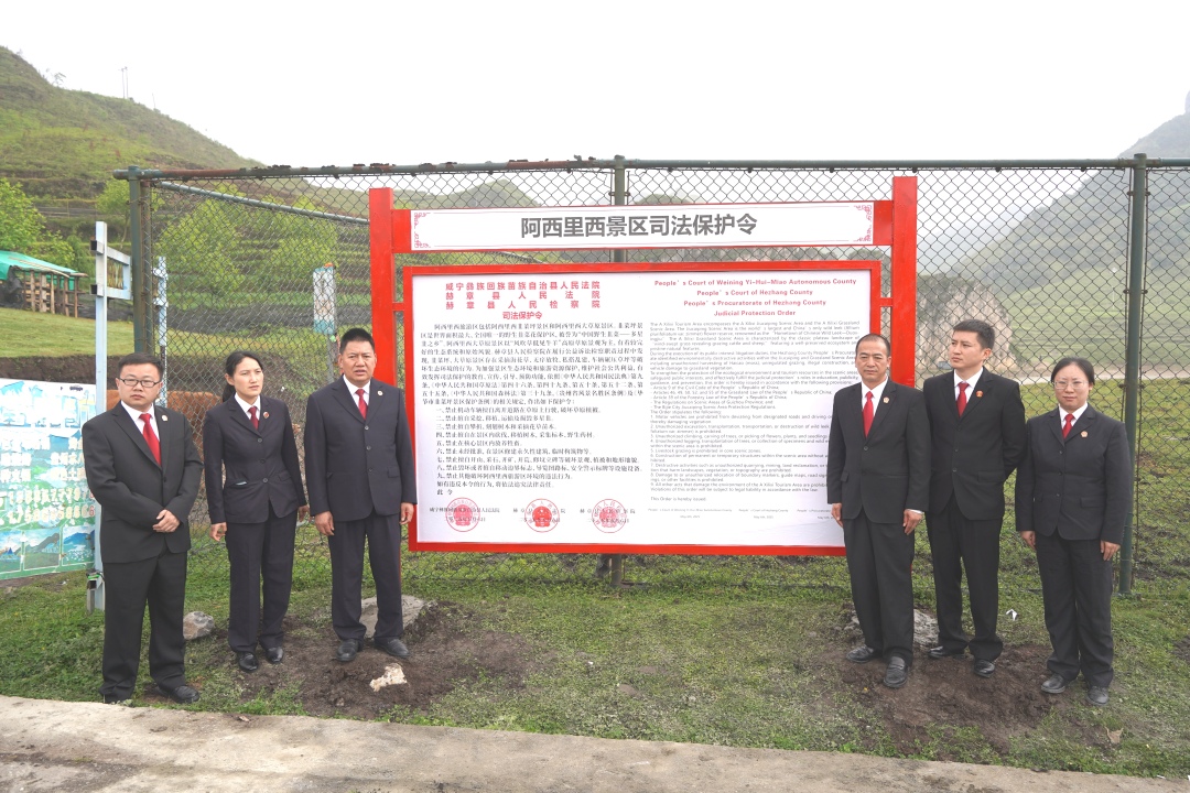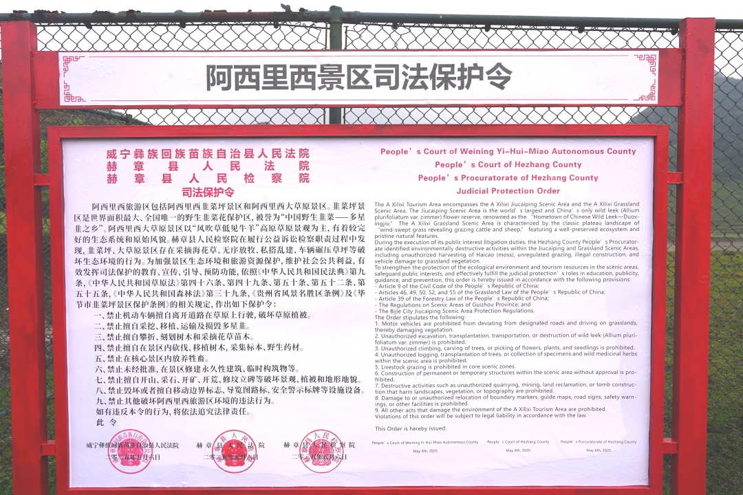 2025年5月6日,威宁自治县人民法院、赫章县人民法院、赫章县人民检察院联合在阿西里西旅游区发布《司法保护令》并竖起公告,帮助打造长江上游生态安全保护屏障。