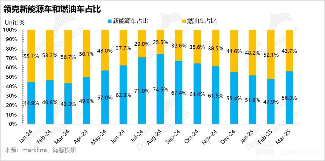 但事实上,并没有按照计划,领克还在生产燃油车,燃油车的比例相当高(尤其是去年收购的。 12 从月份开始到今年 3 月份,反而燃油车的比例达到了。 40%-50% 从上到下),很明显,领克或吉利并不像放弃燃油车这种现金流源源不断的业务,但实际上不利于整个极氪集团打造新能源品牌标签。会出现消费者认知混乱,也会使投资者对极氪集团的估值产生折价。