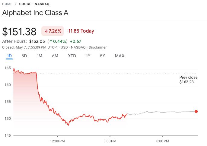 在今天的美股市场中,谷歌的股价一度下跌超过10%。