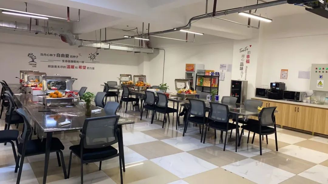 现在员工休息室安装了净化器,饮水机也安装了。东来哥说喝甜的很好,所以可乐、雪碧、果汁、现磨咖啡机、牛奶、蛋糕面包、方便面、香肠,只要不浪费,随时都可以吃。工作人员累了就到休息室休息,他们感到受到尊重。原来我们早上十点工作,后来变成了十一点工作。晚上十一点关门,现在又变成十点半关门;一个月休息六天,让他们觉得公司很重视他们。