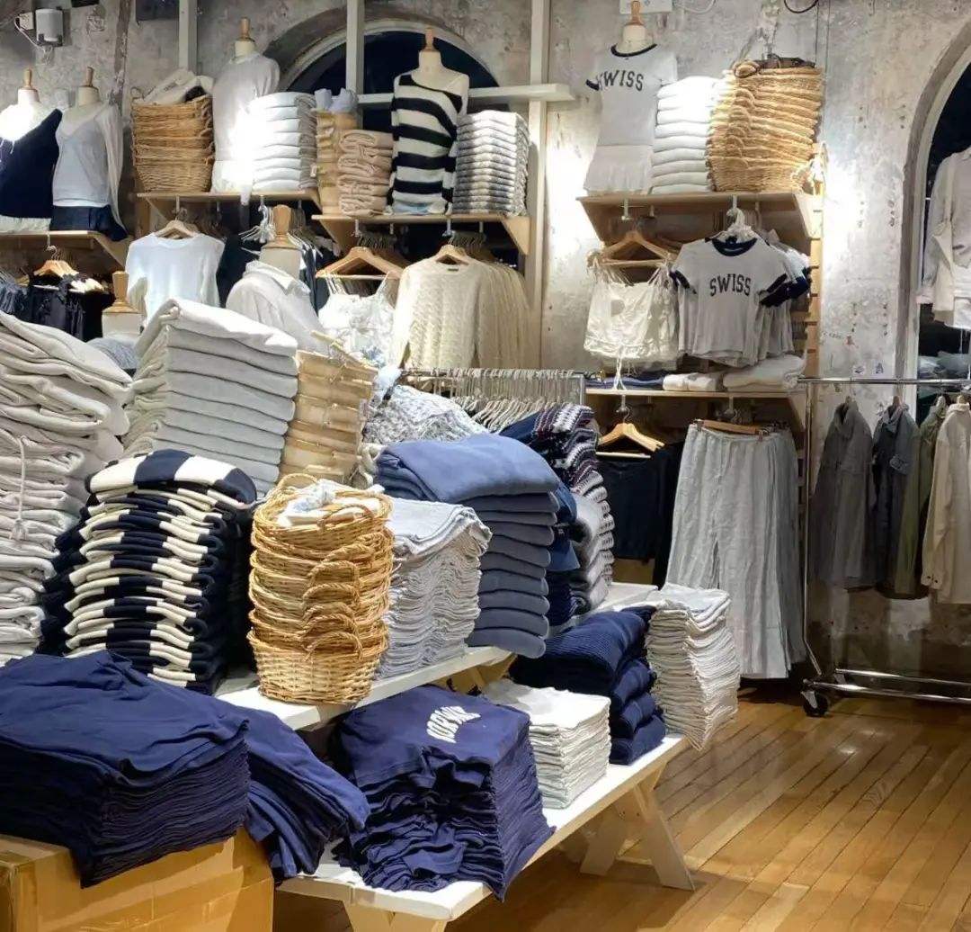 商店创造了一个非常简单的工业空间,商店里的产品展示密集而丰富,以仓库式的方式呈现。大部分单品价格集中在100。 - 与ZARA等快时尚品牌相比,300元更具性价比。