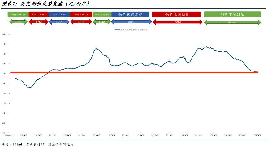 国金证券的统计进一步证实了这一趋势:目前原奶价格不仅持续下跌40个月,甚至回落到2011年左右的水平,可见牧场的经营压力。