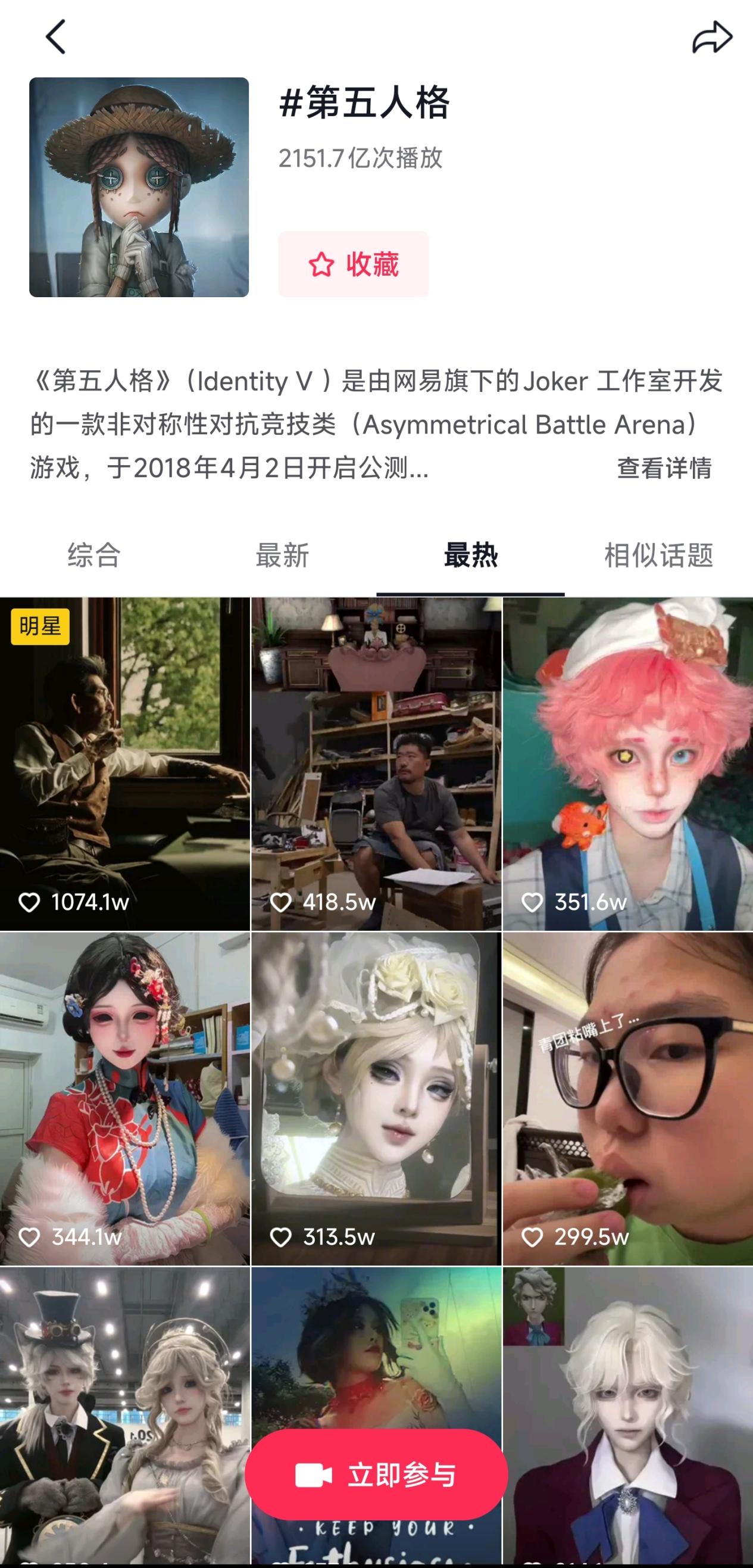 而且讨论它不仅仅是游戏本身硬核的竞技玩法或者精良的皮肤活动,更是玩家自发的整活,COS、情节二创等。可说第五人格社区的梗文化,是近几年除“瓦学弟”之外最火的国内游戏热潮。